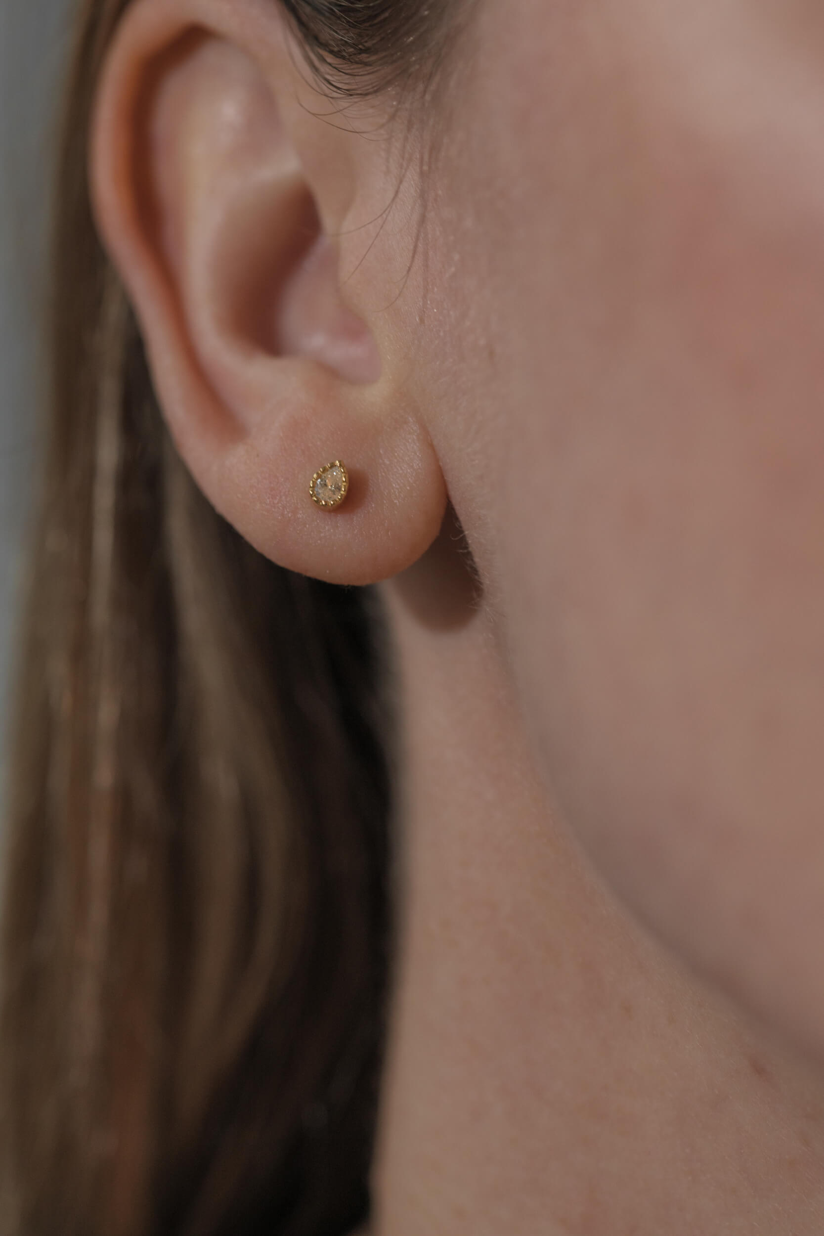 - Approx 3x4mm 18K Gold Plated Sterling Silver Champagne CZ Stone Studs