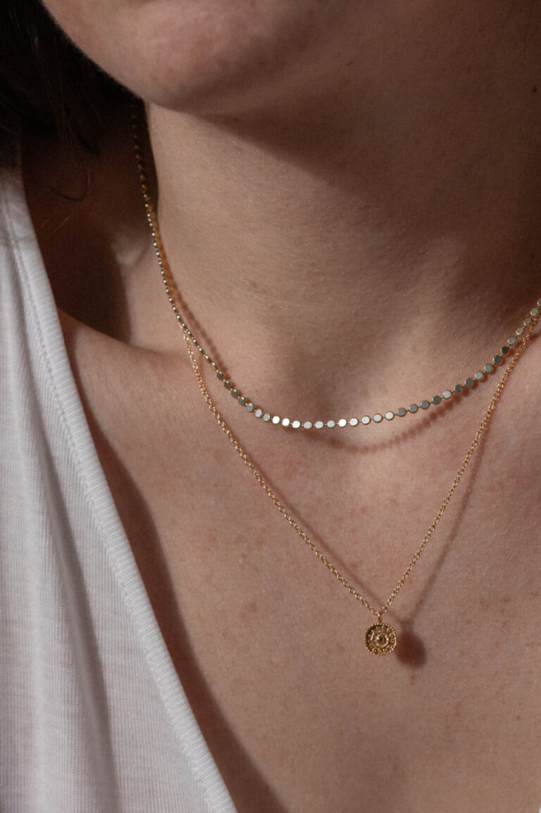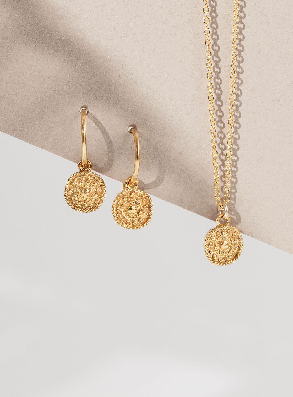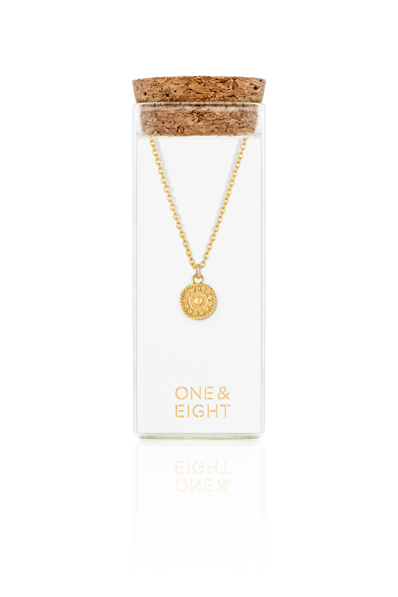 Inspired by ancient coins, our gorgeous Gold Antique Coin Necklace adds style to any look. This necklace comes beautifully packaged in a glass bottle, ideal for gifting.
