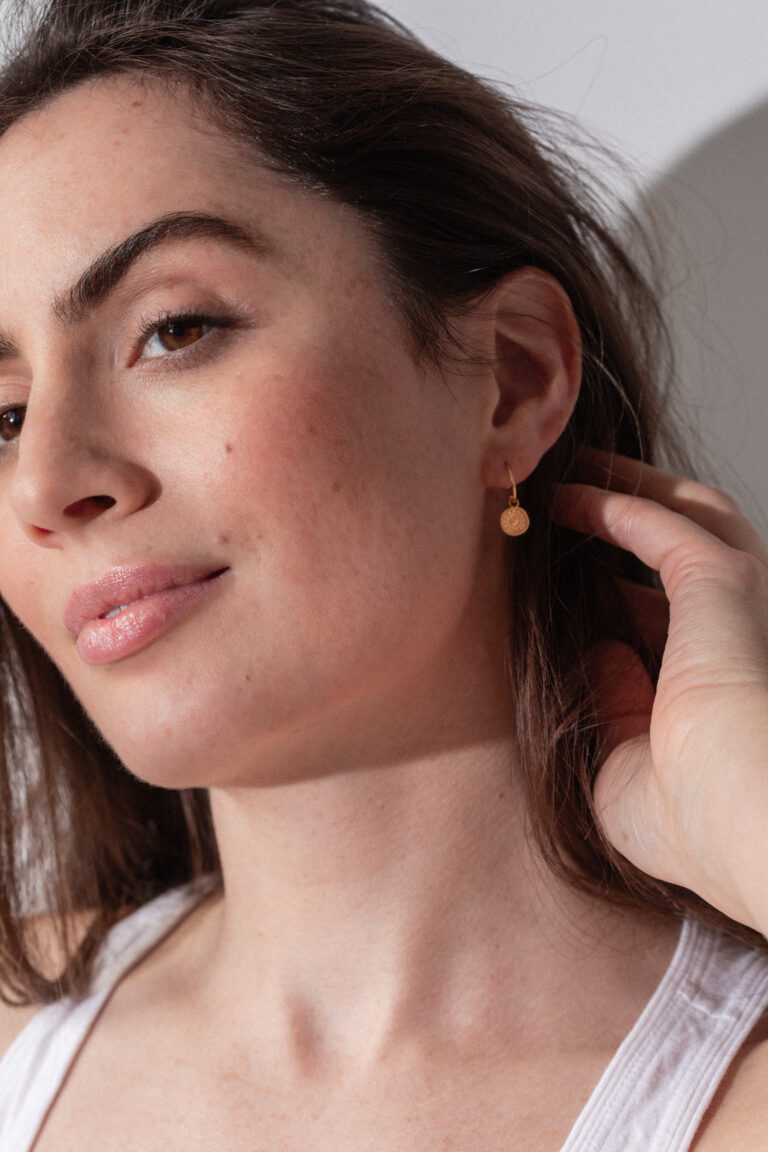 Our new Gold Antique Coin Earrings are a stunning addition to our range. Paired with a versatile mini Hoop Stud, these earrings make the perfect ear stack or they can be worn with any of our contemporary collections for a fun modern look.