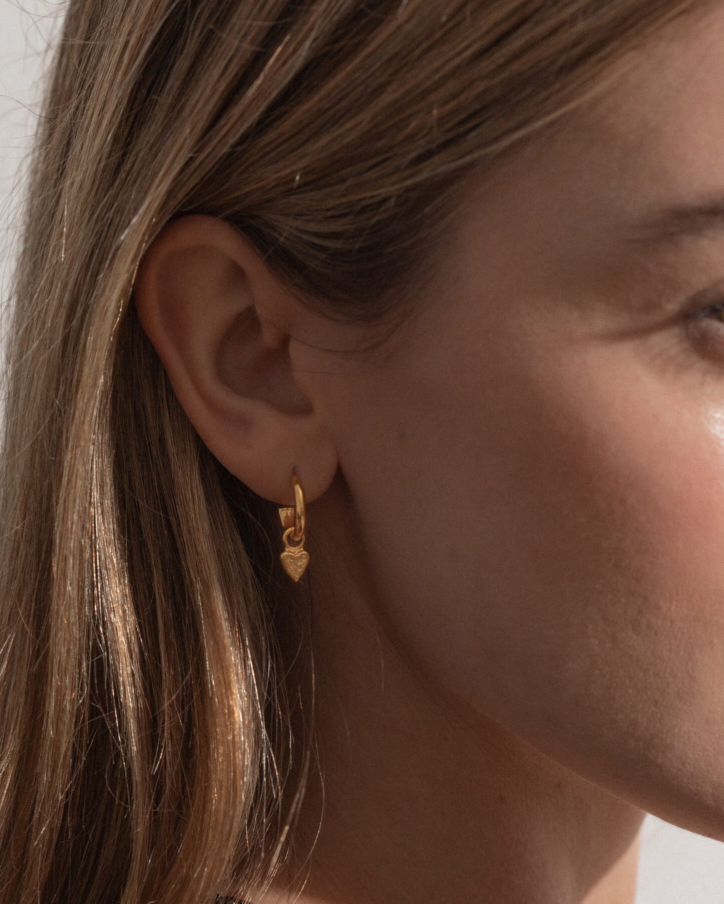 Love is in the air! Make a romantic statement with our Cora Heart Hoop Studs. These chunky earrings can be worn with or without the charm, making them versatile and great value for money.