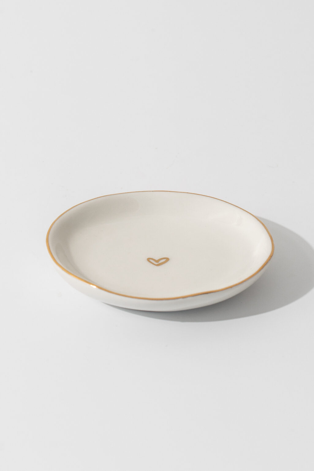 Add a little everyday luxury to your dressing table with our Gold Rim Porcelain Trinket Dish, finished with a delicate gold heart at its centre and fin gold rim. Measuring approximately 10cm, it’s the perfect size for holding rings, earrings, or other little treasures.