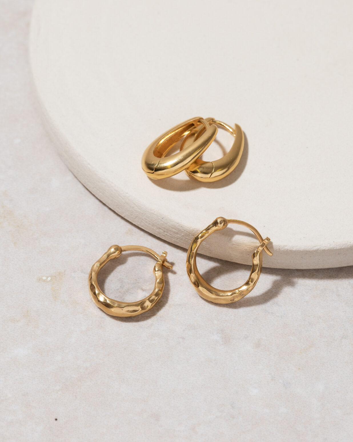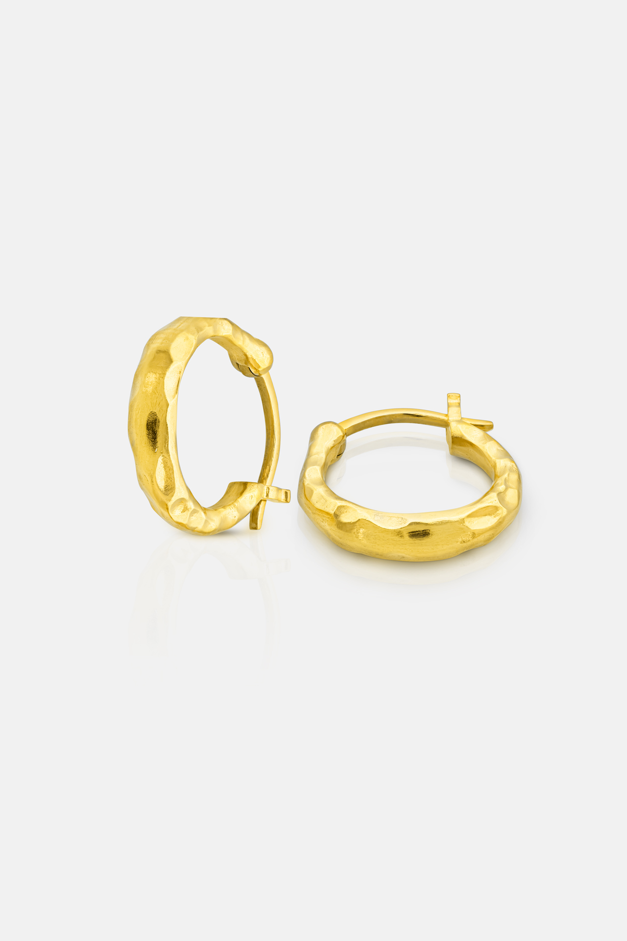 Elevate your look with these Gold Textured Creole Earrings, a refined blend of modern artistry and timeless elegance. Expertly crafted with a textured gold finish, their softly contoured circular silhouette creates a sculptural statement that feels both bold and effortlessly wearable. With a hinge fastening they are both secure and supremely comfortable.