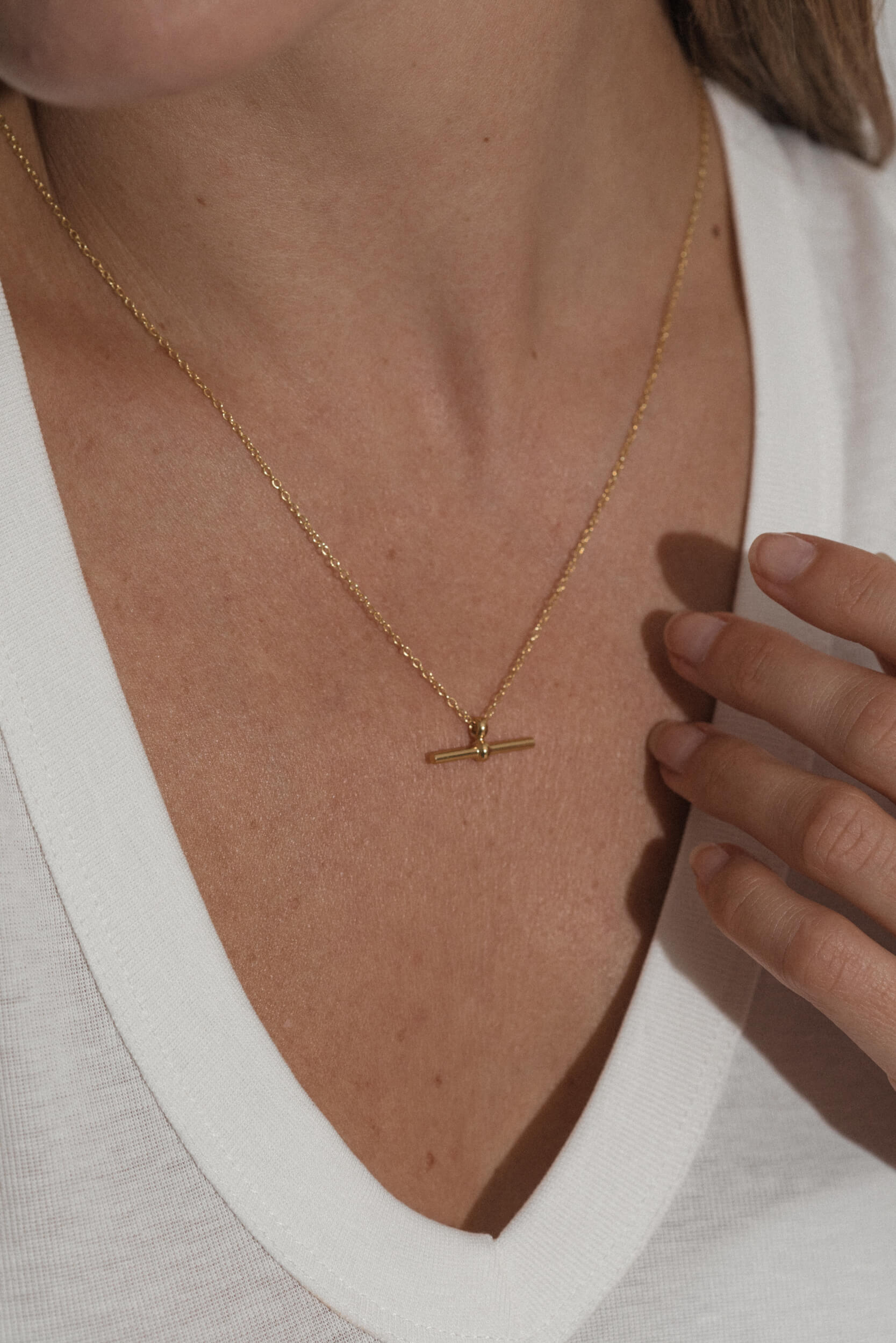Our Silver T-Bar necklace brings timeless necklace brings a contemporary elegance to any outfit. The t-bar necklace has symbolic significance due to its design and historical associations. It represents elegance, sophistication, and balance. The horizontal bar signifies stability, while the vertical bar suggests growth and progress.