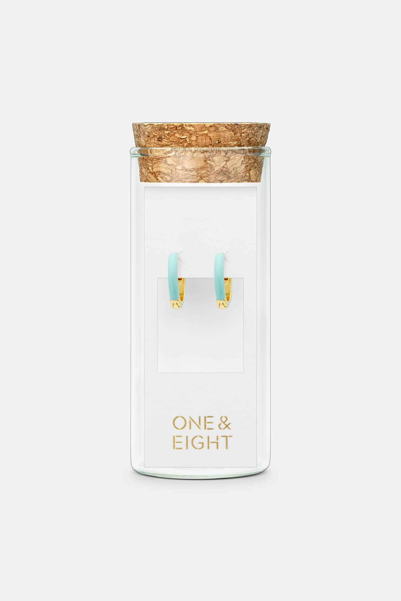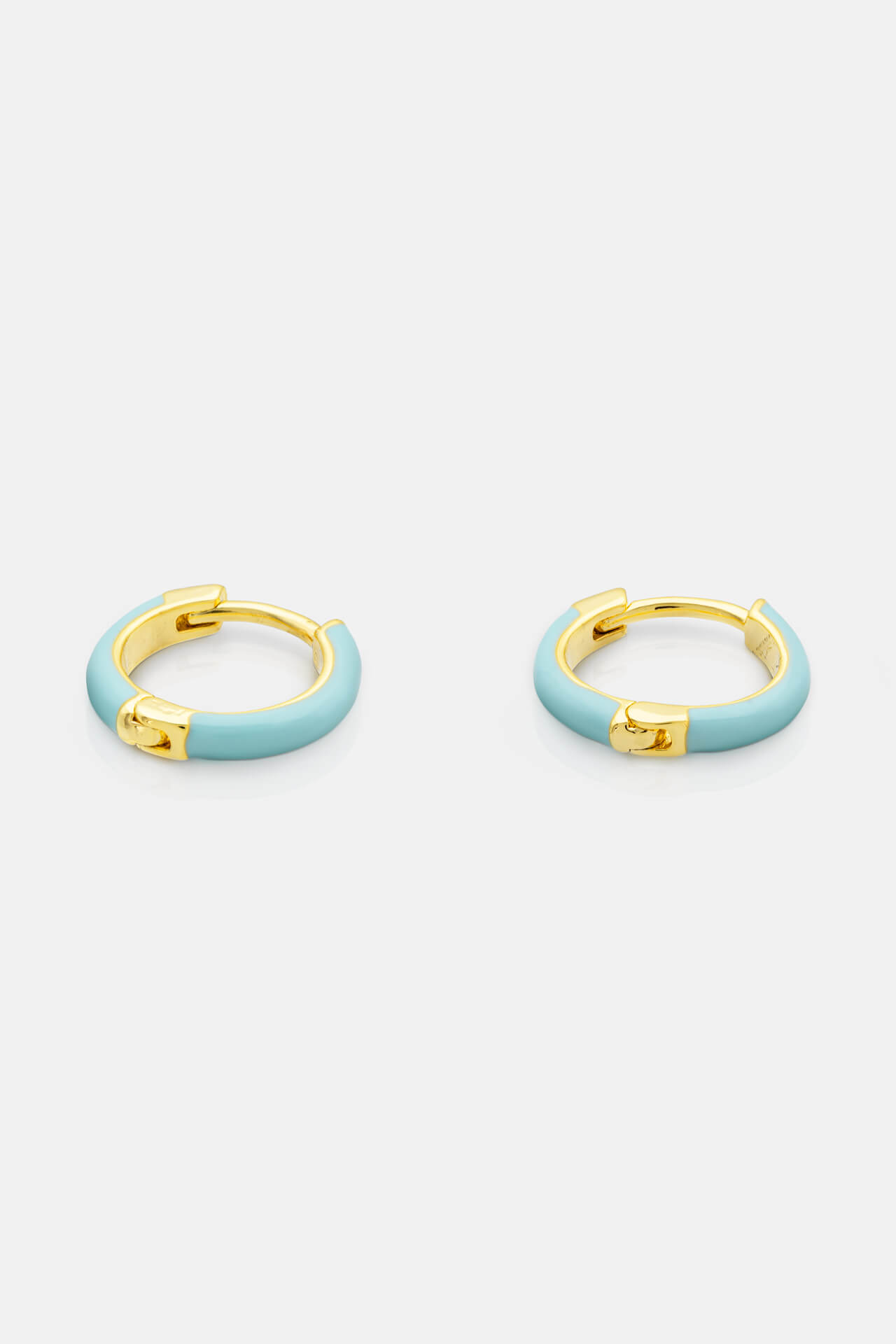 Finished with glossy sky blue enamel over a base of premium 18k gold plate, these sleek little hoops add a cheerful pop of colour you’ll love wearing again and again.